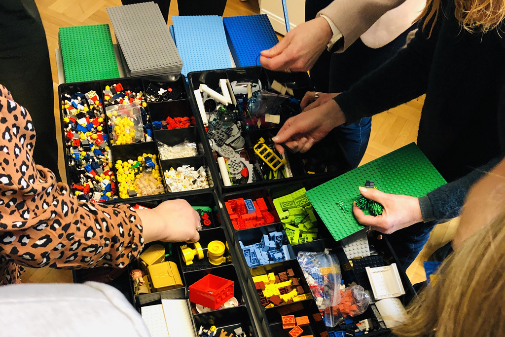 Lämmittelyn jälkeen vuorossa olivat varsinaiset haasteet, joissa osallistujien tehtävänä oli rakentaa omat vastauksensa esitettyihin kysymyksiin legomalleina, jakaa näkemyksensä tarinan muodossa ja lopulta yhdistää pöytäryhmissä jokaisen oma luomus yhteiseen “maailmaan” eli kokonaisuuteen, jolle pohdittiin ryhmänä merkityksiä. Yhtään palikkaa ei saanut poistaa tai lisätä yksilönä tehdyistä malleista, jotta kaikkien näkemykset saataisiin mukaan yhteiseen malliin.
