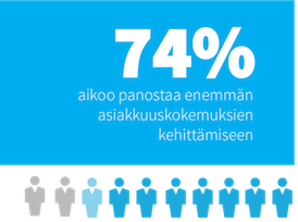 Asiakkuuskokemusten johtamiseen ja kehittämiseen aiotaan panostaa yhä enemmän. Lähes puolessa yrityksistä (2014: 48%, 2013: 49%) on jo olemassa tai harkitaan omaa budjettia asiakkuuskokemusten johtamiselle. Asia on suunnitteilla viidenneksen vastaajista (2014: 21%, 2013: 18%) mukaan heidän edustamissaan yrityksissä. Jopa kolme neljäsosaa sanoo aikovansa panostaa siihen hieman tai huomattavasti enemmän tulevien 12 kk aikana (2014: 74% vs 2013: 59%).