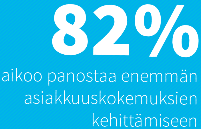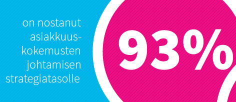 Asiakkuuskokemusten kehittäminen on tärkeä osa lähes jokaisen yrityksen strategiaa. Asiakkuuskokemusten kehittäminen on nostettu nyt jo melkein kaikissa vastaajayrityksissä (2016: 93%/2015: 88%/2014: 95%/2013: 98%) yrityksen strategiaan. Peräti 70%:ssa vastaajayrityksistä toiminta on nostettu yrityksen strategisten päätavoitteiden joukkoon (2015: 58%/2014: 61%/2013: 53%).