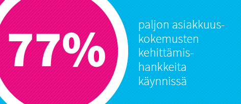 Meneillään olevien kehittämishankkeiden määrä on edelleen korkea ja asiakkuuskokemusten kehitystyön koordinoinnin määrä vaihtelee. Kaikkiaan 77% vastaajista raportoi, että heidän yrityksissään tehdään tällä hetkellä paljon hankkeita asiakkuuskokemusten kehittämiseksi (2014: 81%/2013: 73%). Vastaajista 52% mukaan kehitystä tehdään koordinoidusti. Yli puolessa vastaajien yrityksistä (61%) ei kuitenkaan ole nimetty asiakkuuskokemusten kehittämisestä vastaavaa johtajaa, ja hieman yli puolessa vastaajien yrityksistä (54%) on organisaatio, joka vastaa asiakkuuskokemusten kehittämisestä.